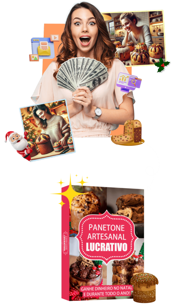 Estamos oferecendo o Panetone Artesanal Lucrativo, um eBook completo com 35 receitas deliciosas de panetones artesanais, além de dicas valiosas para criar um negócio lucrativo. Você também receberá 4 bônus exclusivos, incluindo receitas para ceias de Natal e Ano Novo, e treinamento de marketing para Whatsapp e Facebook.